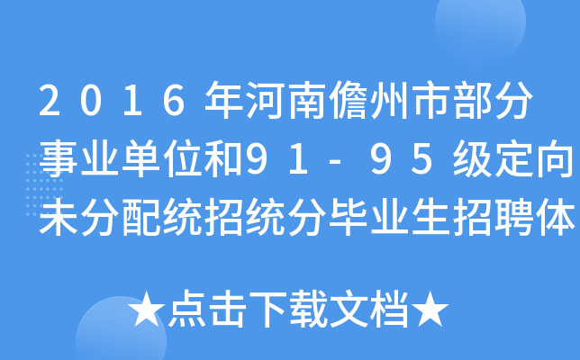 2016年儋州市部分事业单位和2016年91-95级定向未分配统招统分毕业生招聘事业单位工作人员的笔试、面试和考核工作已结束。根据招聘方案要求,现将体检有关事项公告如下: