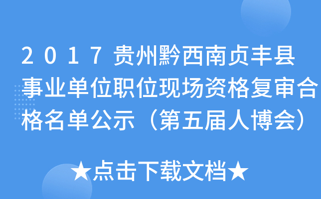 2017贵州黔西南贞丰县事业单位职位现场资格复审合格名单公示(第五届人博会)