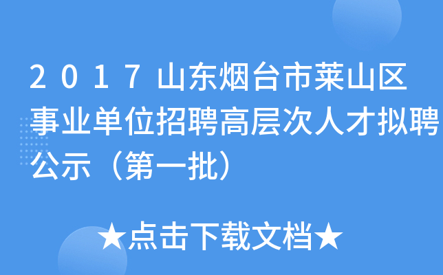 原标题:莱山区事业单位招聘高层次人才拟聘用人员公示(第一批)