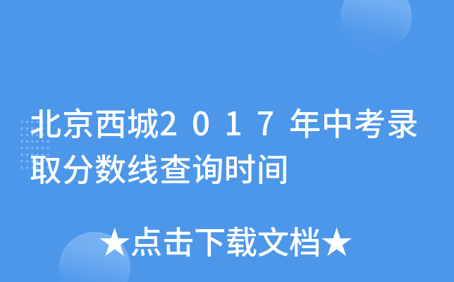根据往年中考分数线公布时间,预计2017北京西城中考录取分数线将于7月中下旬公布,届时敬请广大考生密切关注®无忧考网北京西城中考录取分数线栏目,我们将会准确的为您提供北京西城中考分数线信息!