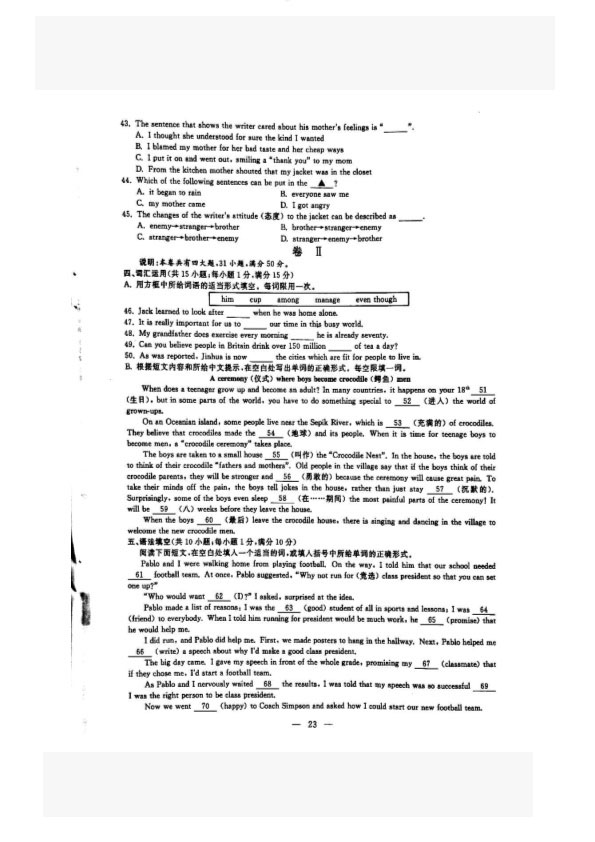 2023年浙江金华中考历史与社会.道德与法治试题及答案