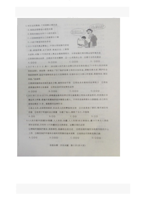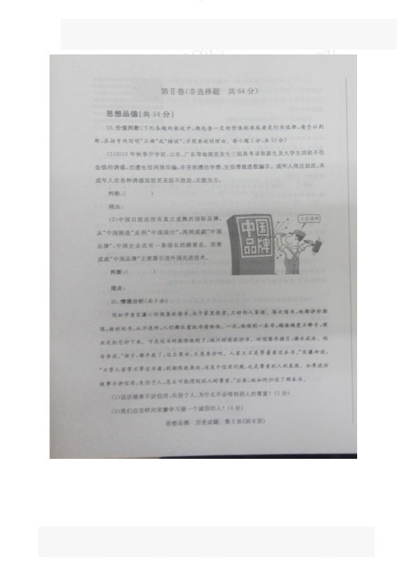 2017年山东枣庄中考政治试题(已公布)