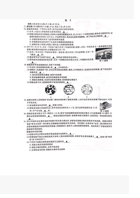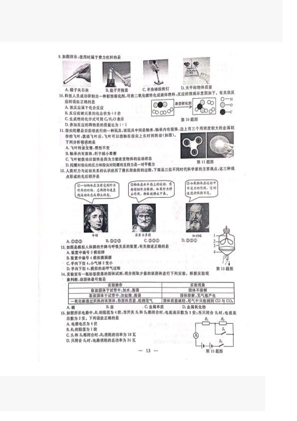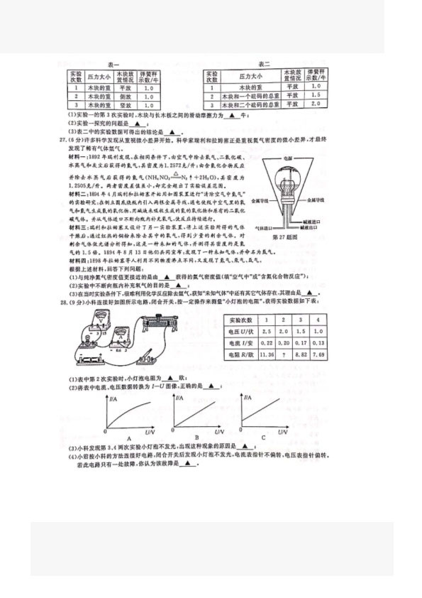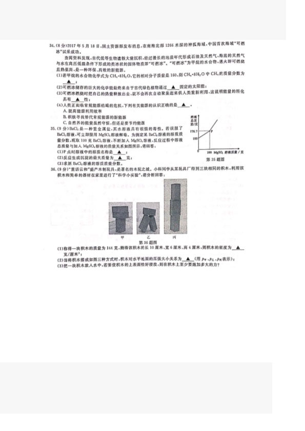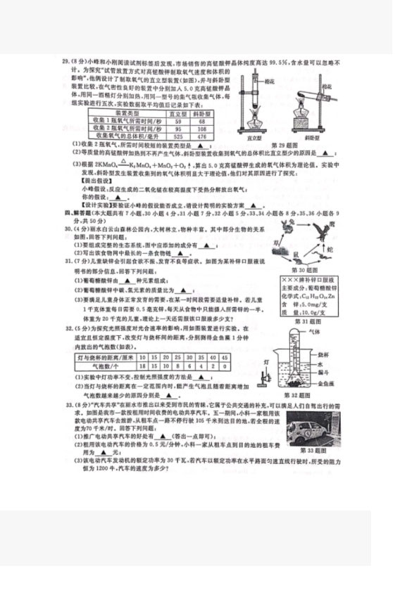 2017年浙江丽水中考物理试卷及答案(已公布)