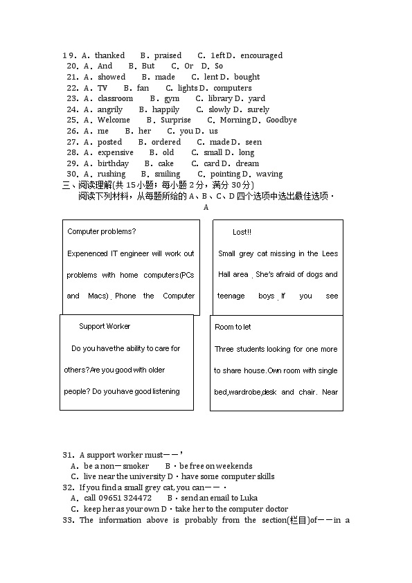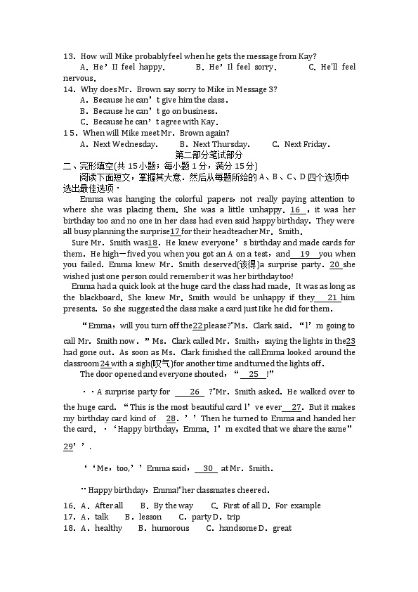 2017浙江丽水中考英语试卷及答案(已公.docx
