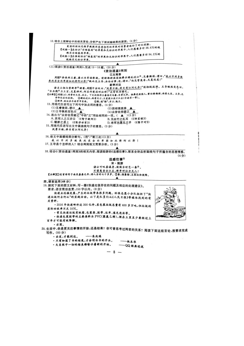 人生处处是考场,今日各为中考忙。斗智斗勇齐亮相,得失成败走一场。考场潇洒不虚枉,多年以后话沧桑!2017年浙江绍兴中考语文科目考试已落下帷幕,®无忧考网在考后第一时间提供浙江绍兴中考语文试卷及答案解析,供广大考生参考估分。预祝各位考生取得优异的成绩,顺利考入理想的高中!