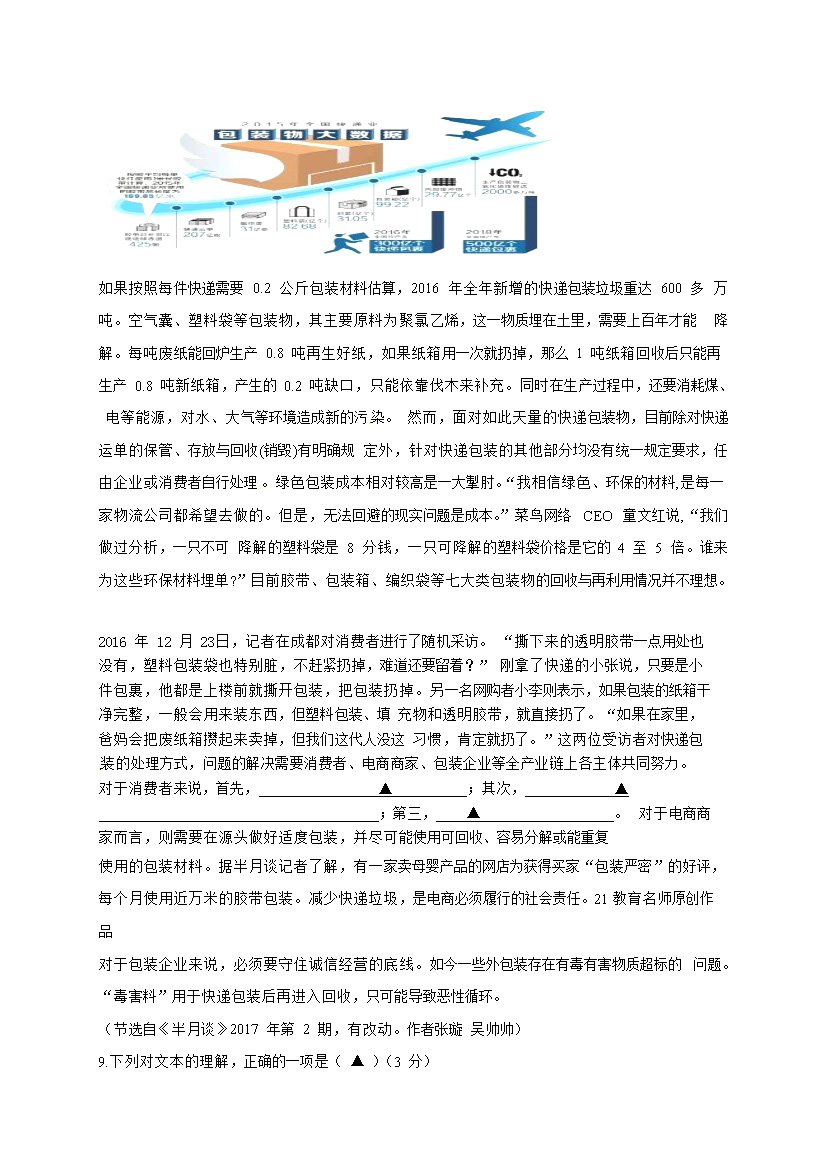 人生处处是考场,今日各为中考忙。斗智斗勇齐亮相,得失成败走一场。考场潇洒不虚枉,多年以后话沧桑!2017年浙江舟山中考语文科目考试已落下帷幕,®无忧考网在考后第一时间提供浙江舟山中考语文试卷及答案解析,供广大考生参考估分。预祝各位考生取得优异的成绩,顺利考入理想的高中!