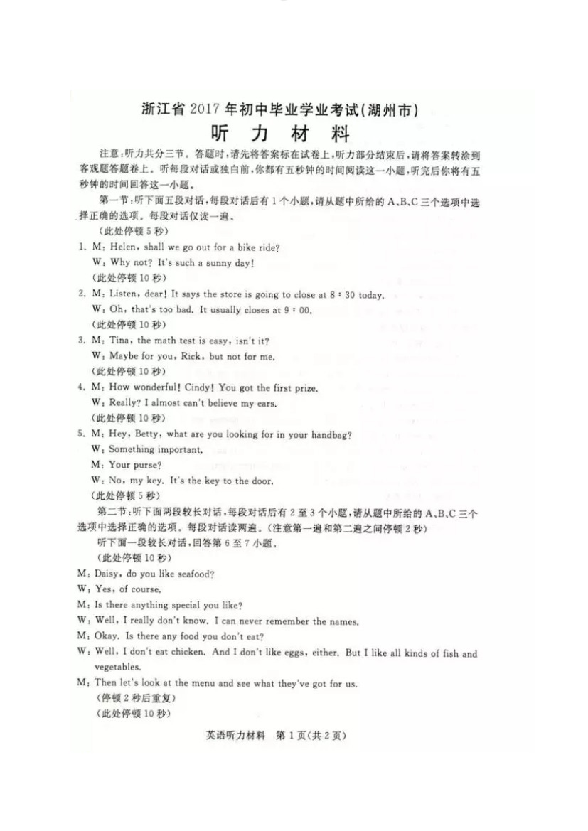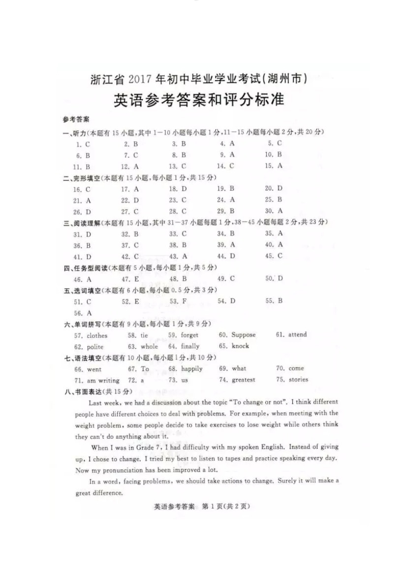 人生处处是考场,今日各为中考忙。斗智斗勇齐亮相,得失成败走一场。考场潇洒不虚枉,多年以后话沧桑!2017年浙江湖州中考英语科目考试已落下帷幕,©无忧考网在考后第一时间提供浙江湖州中考英语试卷及答案解析,供广大考生参考估分。预祝各位考生取得优异的成绩,顺利考入理想的高中!