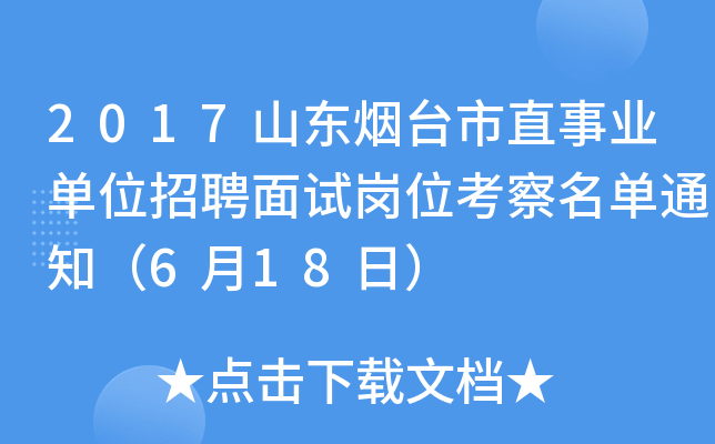 原标题:关于公布2017年烟台市市直事业单位公开招聘6月18日面试岗位进入考察范围人员名单的通知
