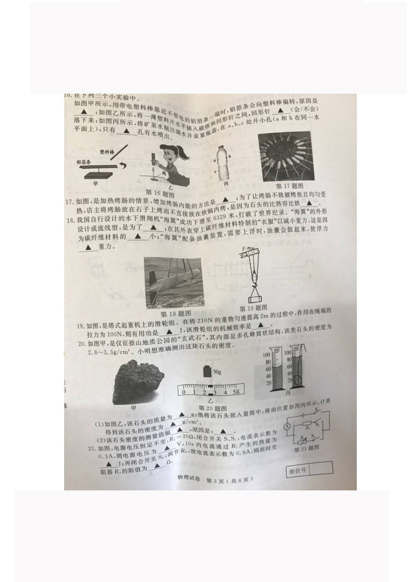 人生处处是考场,今日各为中考忙。斗智斗勇齐亮相,得失成败走一场。考场潇洒不虚枉,多年以后话沧桑!2017年江苏扬州中考物理科目考试已落下帷幕,©无忧考网在考后第一时间提供江苏扬州中考物理试卷及答案解析,供广大考生参考估分。预祝各位考生取得优异的成绩,顺利考入理想的高中!