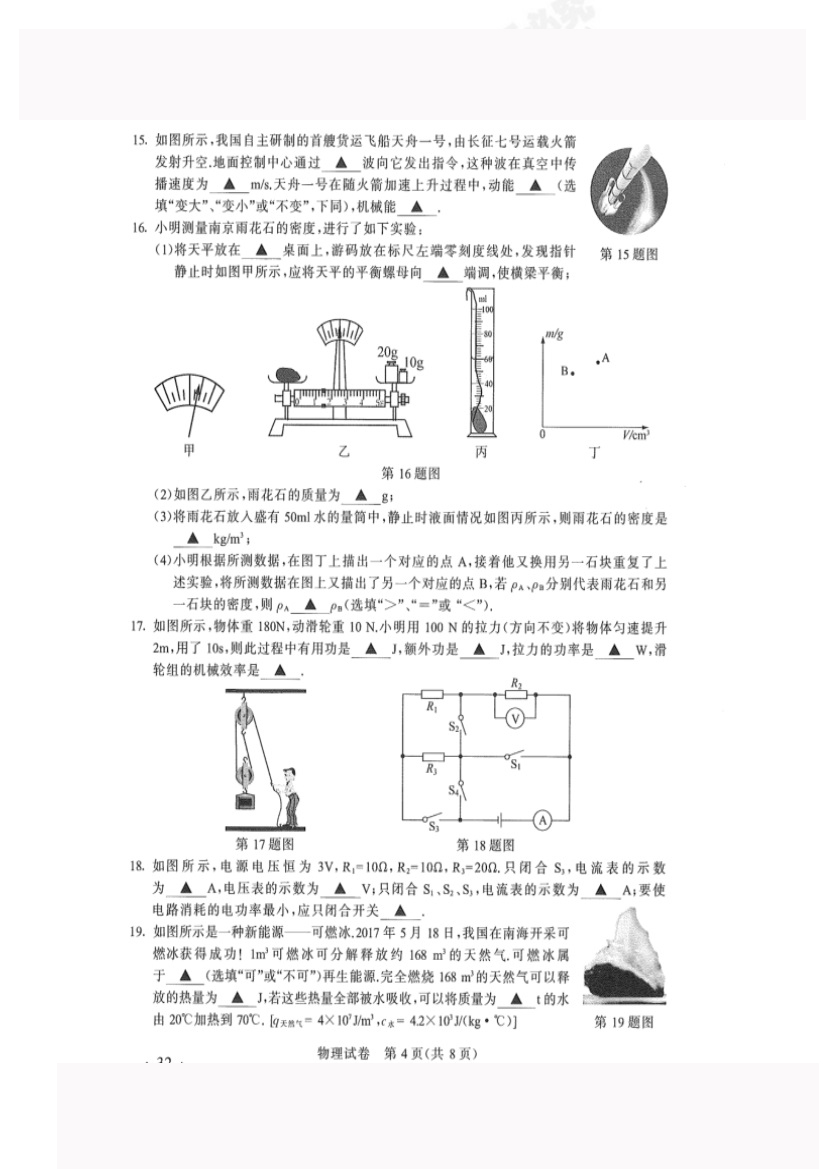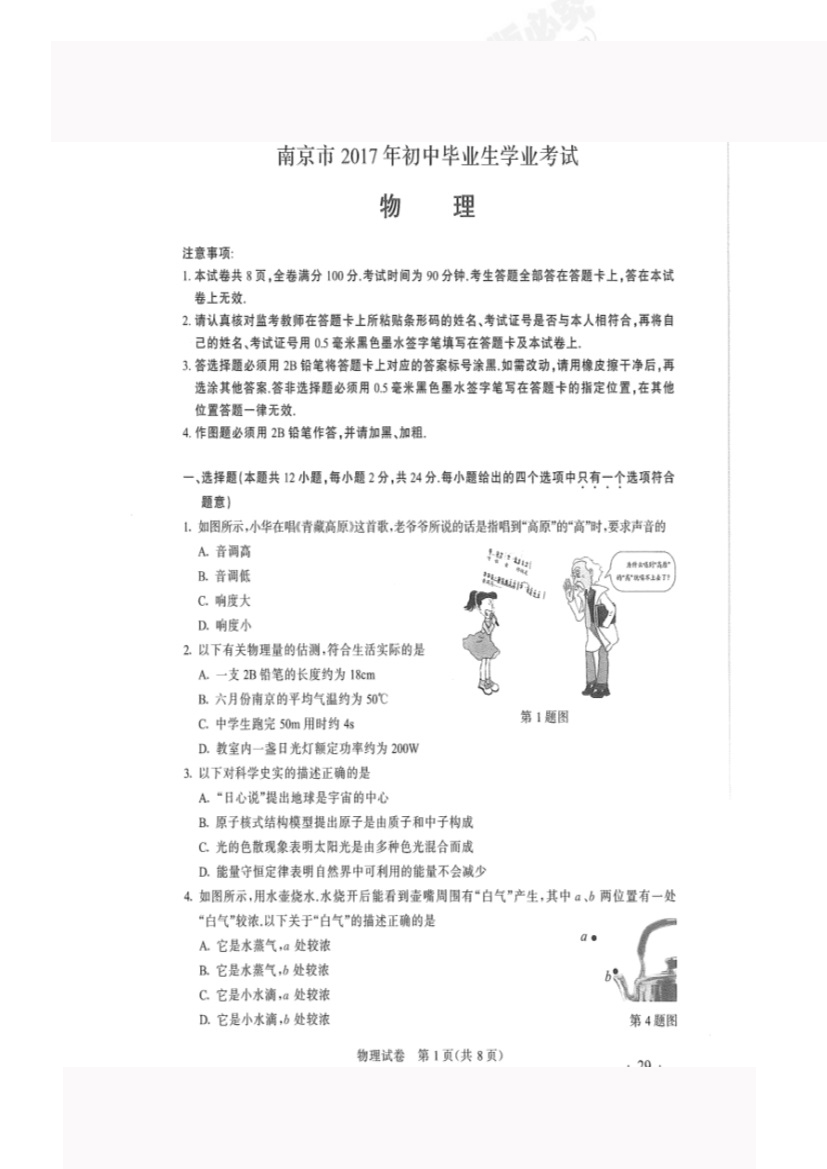 人生处处是考场,今日各为中考忙。斗智斗勇齐亮相,得失成败走一场。考场潇洒不虚枉,多年以后话沧桑!2017年江苏南京中考物理科目考试已落下帷幕,©无忧考网在考后第一时间提供江苏南京中考物理试卷及答案解析,供广大考生参考估分。预祝各位考生取得优异的成绩,顺利考入理想的高中!