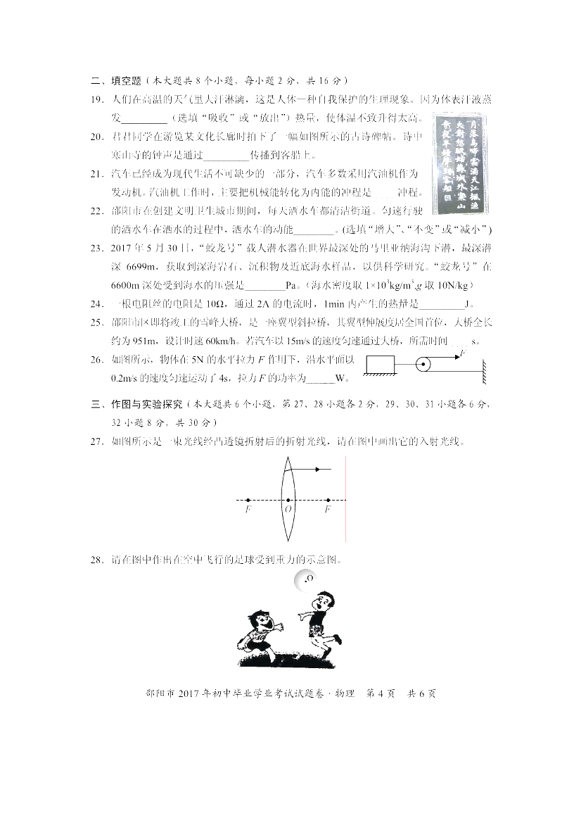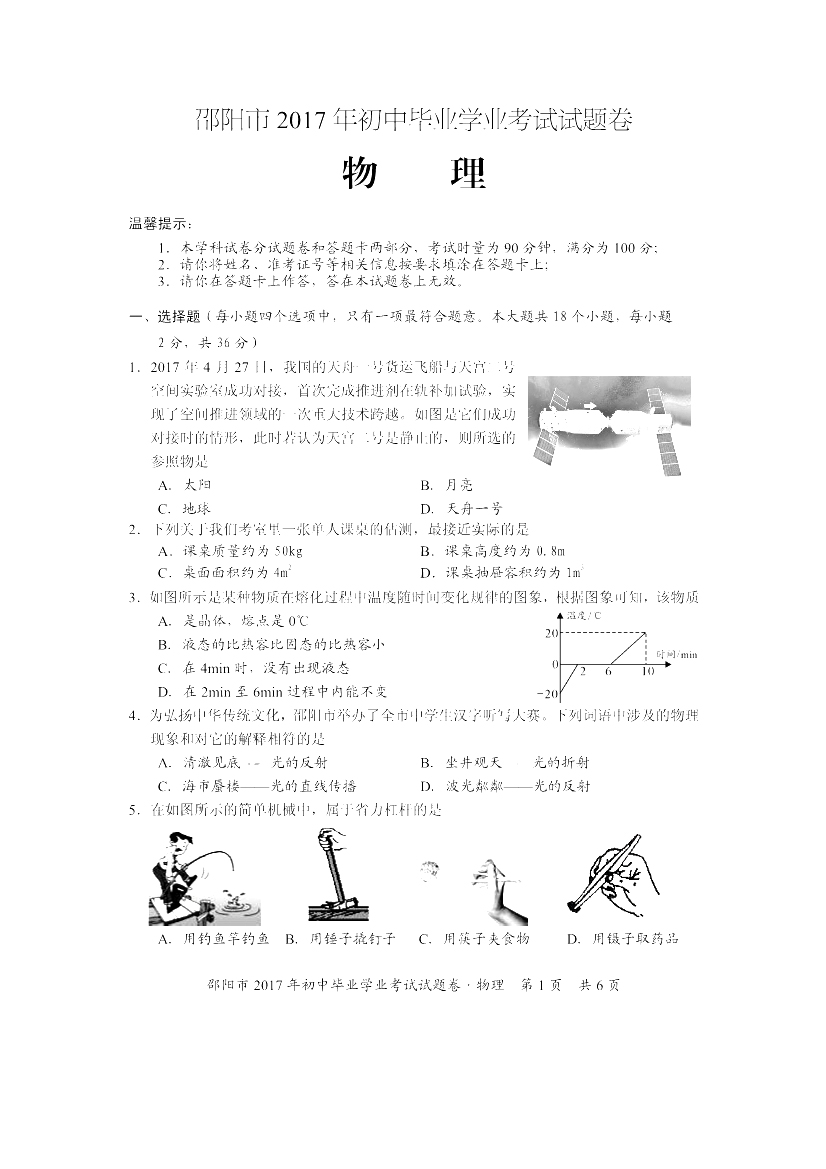 人生处处是考场,今日各为中考忙。斗智斗勇齐亮相,得失成败走一场。考场潇洒不虚枉,多年以后话沧桑!2017年湖南邵阳中考物理科目考试已落下帷幕,®无忧考网在考后第一时间提供湖南邵阳中考物理试卷及答案解析,供广大考生参考估分。预祝各位考生取得优异的成绩,顺利考入理想的高中!