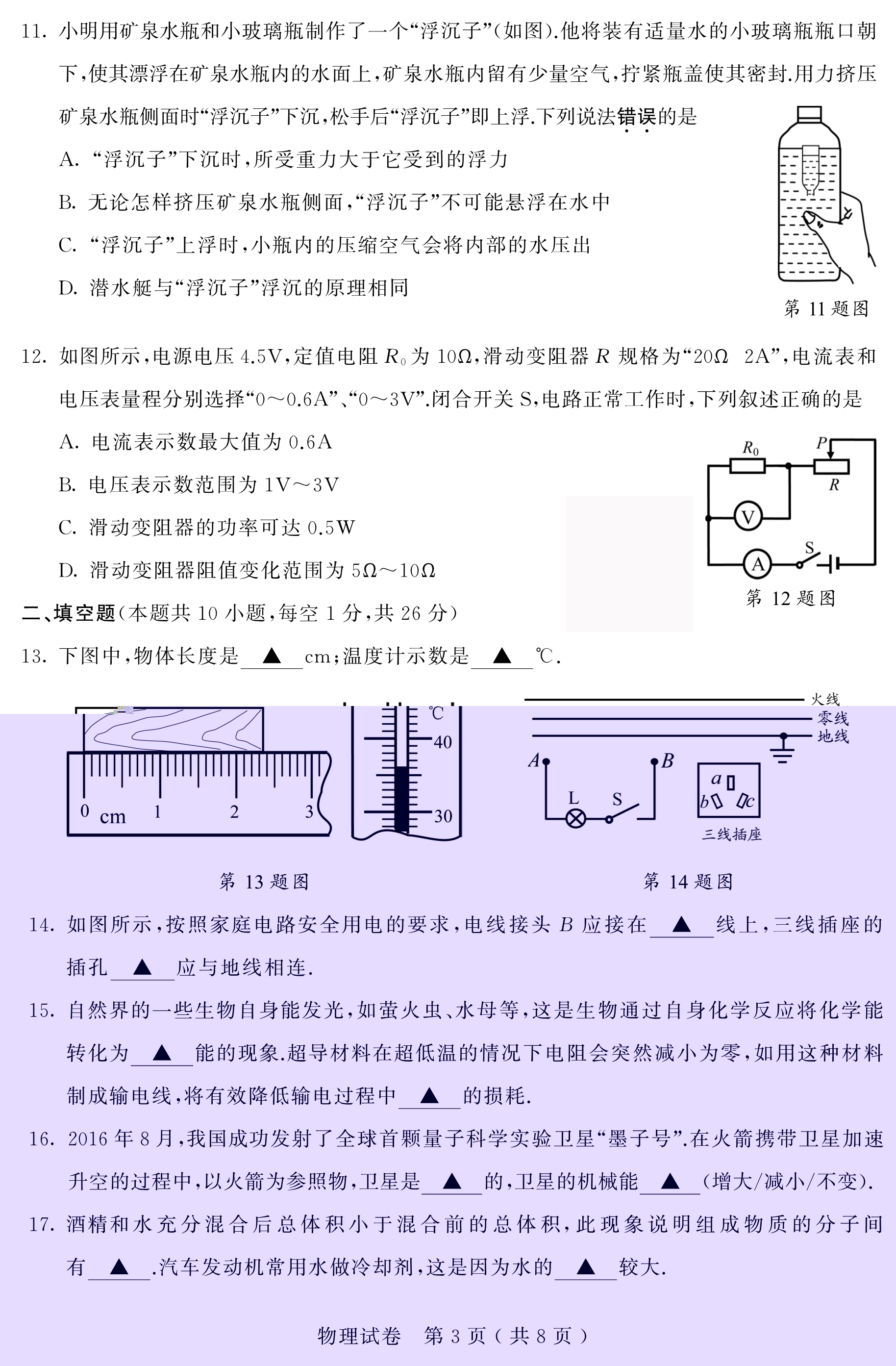人生处处是考场,今日各为中考忙。斗智斗勇齐亮相,得失成败走一场。考场潇洒不虚枉,多年以后话沧桑!2017年江苏苏州中考物理科目考试已落下帷幕,©无忧考网在考后第一时间提供江苏苏州中考物理试卷及答案解析,供广大考生参考估分。预祝各位考生取得优异的成绩,顺利考入理想的高中!