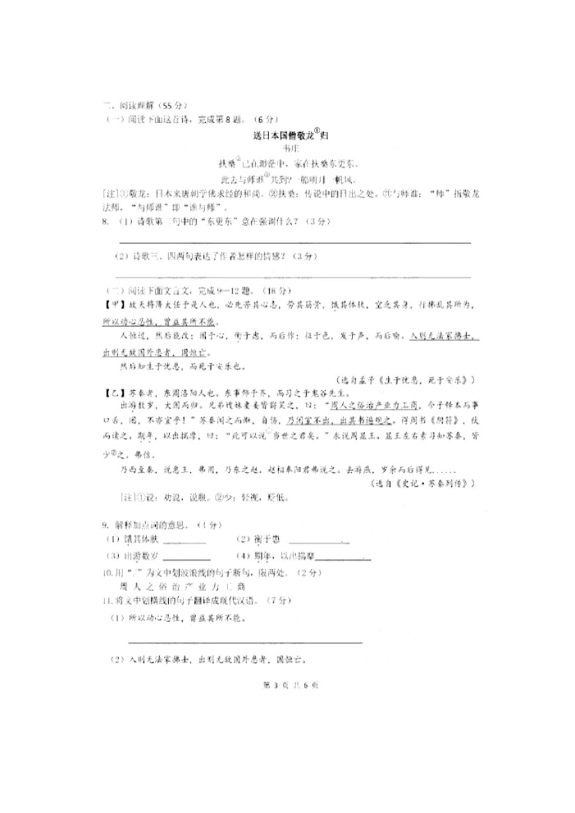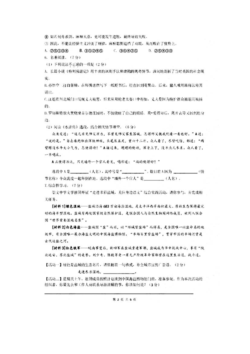 人生处处是考场,今日各为中考忙。斗智斗勇齐亮相,得失成败走一场。考场潇洒不虚枉,多年以后话沧桑!2017年江苏盐城中考语文科目考试已落下帷幕,©无忧考网在考后第一时间提供江苏盐城中考语文试卷及答案解析,供广大考生参考估分。预祝各位考生取得优异的成绩,顺利考入理想的高中!