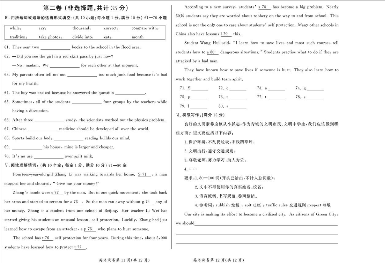 人生处处是考场,今日各为中考忙。斗智斗勇齐亮相,得失成败走一场。考场潇洒不虚枉,多年以后话沧桑!2017年内蒙古呼和浩特中考英语科目考试已落下帷幕,©无忧考网在考后第一时间提供内蒙古呼和浩特中考英语试卷及答案解析,供广大考生参考估分。预祝各位考生取得优异的成绩,顺利考入理想的高中!