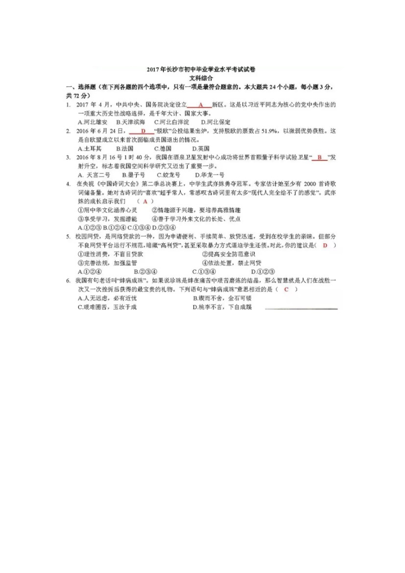 人生处处是考场,今日各为中考忙。斗智斗勇齐亮相,得失成败走一场。考场潇洒不虚枉,多年以后话沧桑!2017年湖南长沙中考政治科目考试已落下帷幕,®无忧考网在考后第一时间提供湖南长沙中考政治试卷及答案解析,供广大考生参考估分。预祝各位考生取得优异的成绩,顺利考入理想的高中!