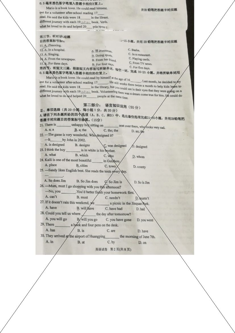 人生处处是考场,今日各为中考忙。斗智斗勇齐亮相,得失成败走一场。考场潇洒不虚枉,多年以后话沧桑!2017年贵州黔东南中考英语科目考试已落下帷幕,®无忧考网在考后第一时间提供贵州黔东南中考英语试卷及答案解析,供广大考生参考估分。预祝各位考生取得优异的成绩,顺利考入理想的高中!