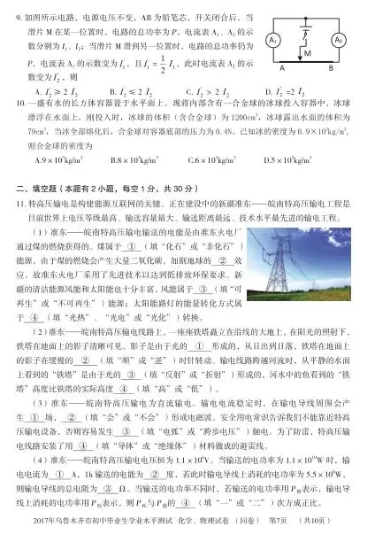 人生处处是考场,今日各为中考忙。斗智斗勇齐亮相,得失成败走一场。考场潇洒不虚枉,多年以后话沧桑!2017年新疆乌鲁木齐中考物理科目考试已落下帷幕,®无忧考网在考后第一时间提供新疆乌鲁木齐中考物理试卷及答案解析,供广大考生参考估分。预祝各位考生取得优异的成绩,顺利考入理想的高中!