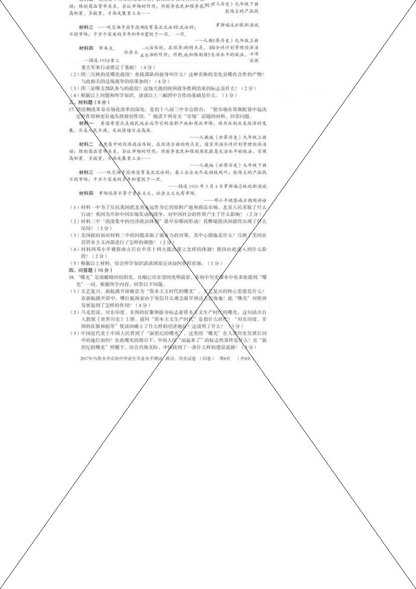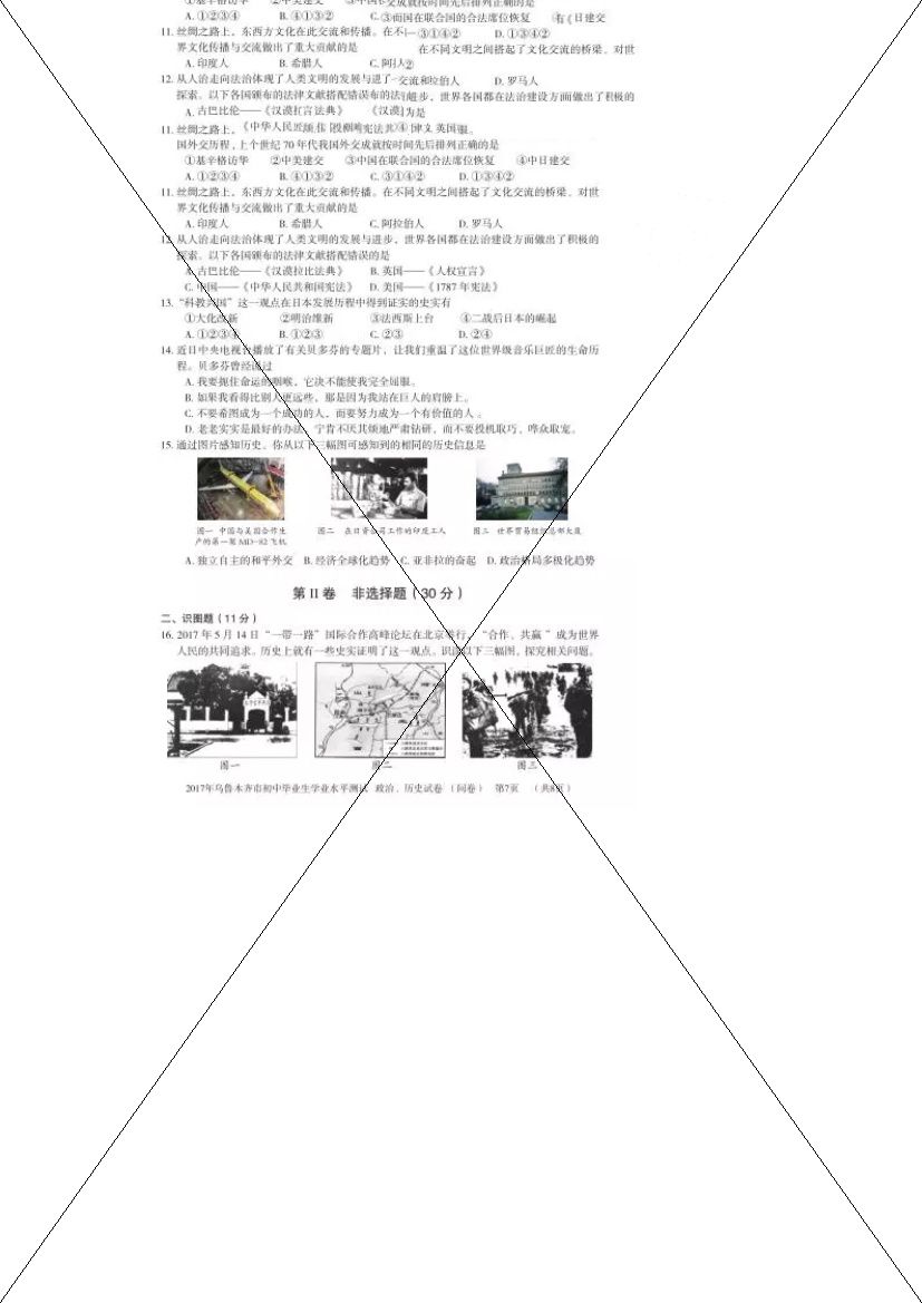 人生处处是考场,今日各为中考忙。斗智斗勇齐亮相,得失成败走一场。考场潇洒不虚枉,多年以后话沧桑!2017年新疆乌鲁木齐中考历史科目考试已落下帷幕,©无忧考网在考后第一时间提供新疆乌鲁木齐中考历史试卷及答案解析,供广大考生参考估分。预祝各位考生取得优异的成绩,顺利考入理想的高中!