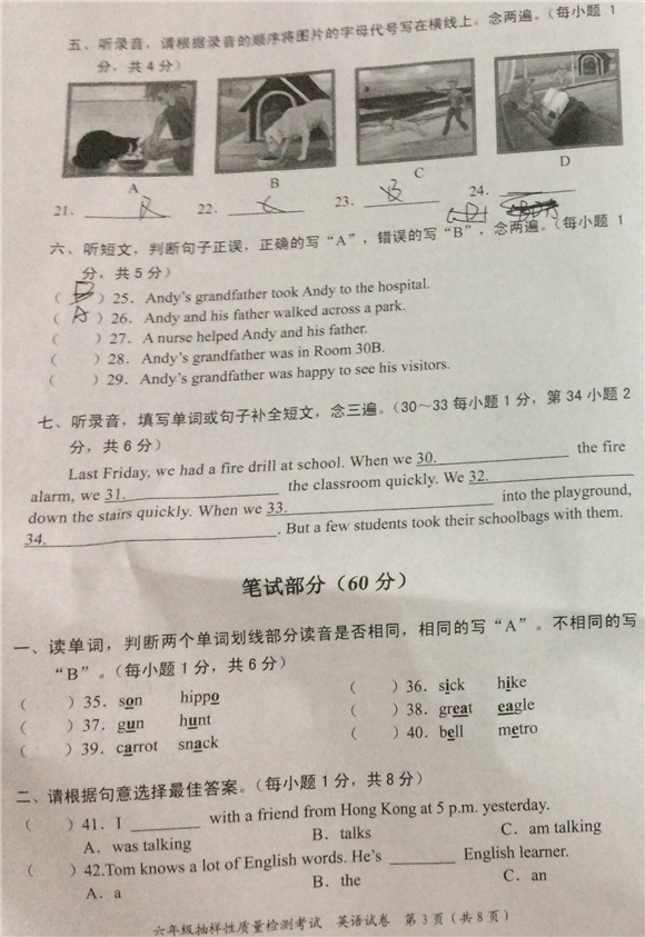 2017年广东深圳罗湖区六年级调考英语试.docx