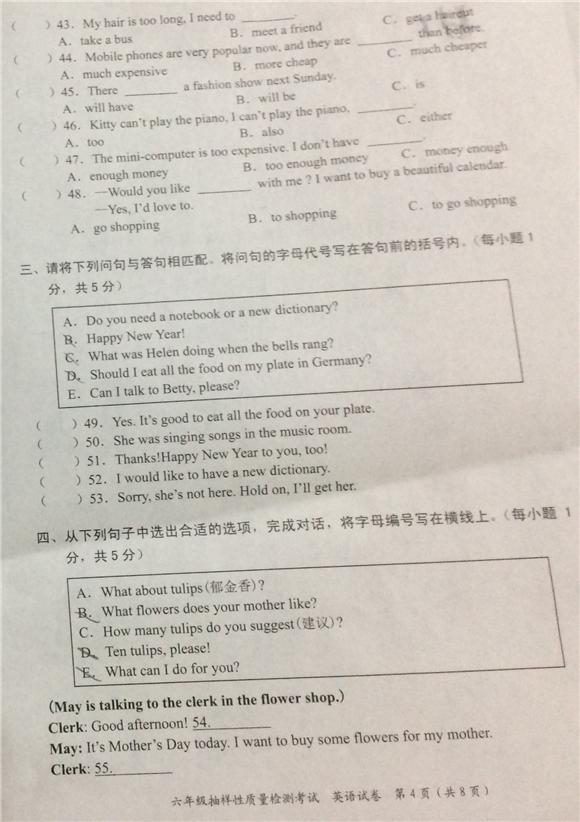 2023年广东省深圳市福田区小升初英语试卷及答案