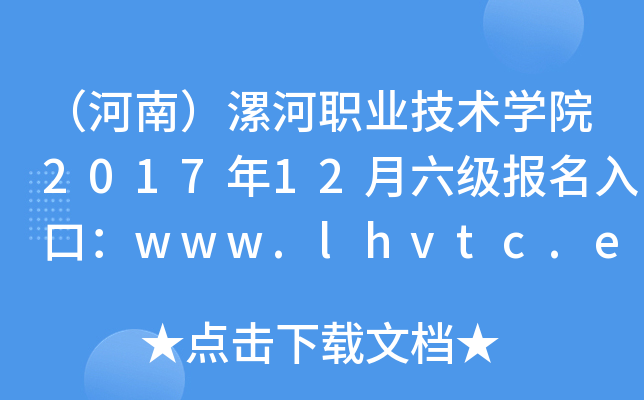 参加(河南)漯河职业技术学院2017年12月英语六级考试的考生,可直接登录(河南)漯河职业技术学院官方网站的【六级考试平台(http://www.lhvtc.edu.cn/)】进行英语六级报名。