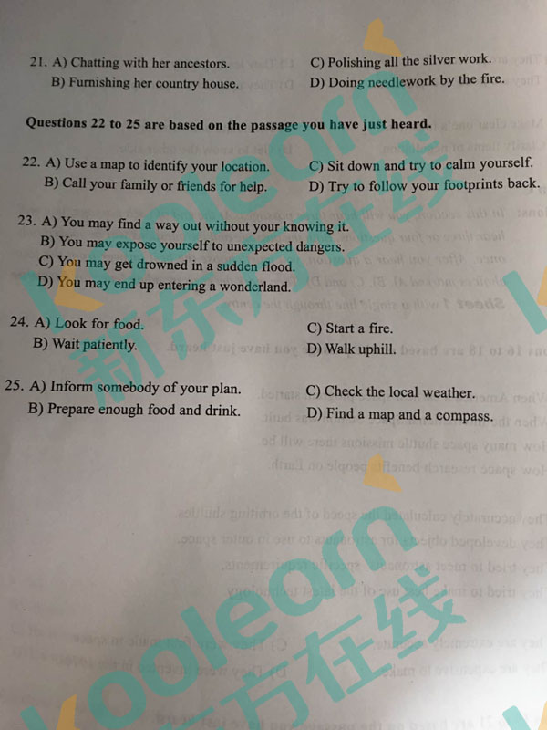 更多四级真题答案请见>>>2017年12月英语四级真题及答案专题