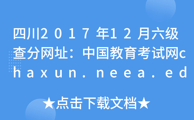 【#大学英语四六级考试# #四川2017年12月六级查分网址:中国教育考试网chaxun.neea.edu.cn#】为了方便四川考生能第一时间查询到2017年12月六级分数,®无忧考网特别整理了四川2017年12月六级查分网址,点击即可查分。