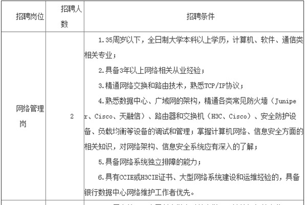 为适应业务发展需要,现面向社会公开招聘总行信息科技部工作人员,诚邀有志之士携手共创美好未来!