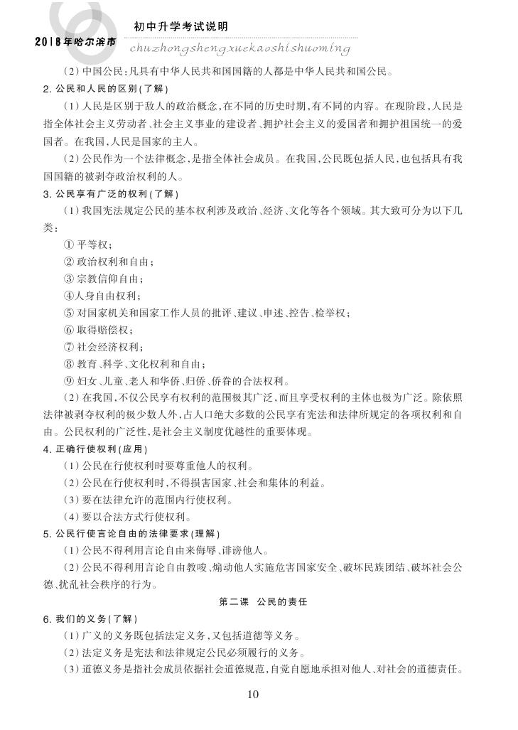黑龙江哈尔滨2018年中考考试说明:政治.docx