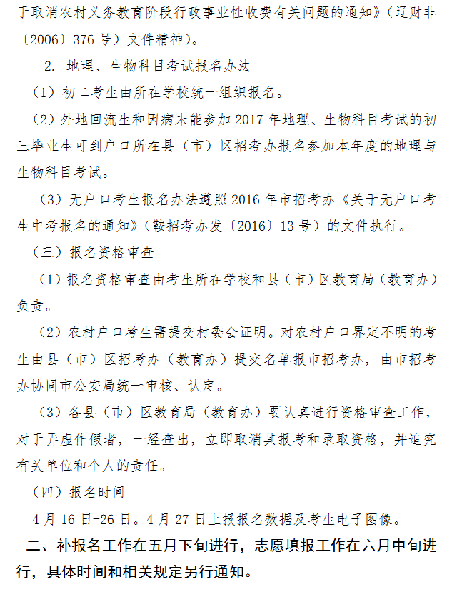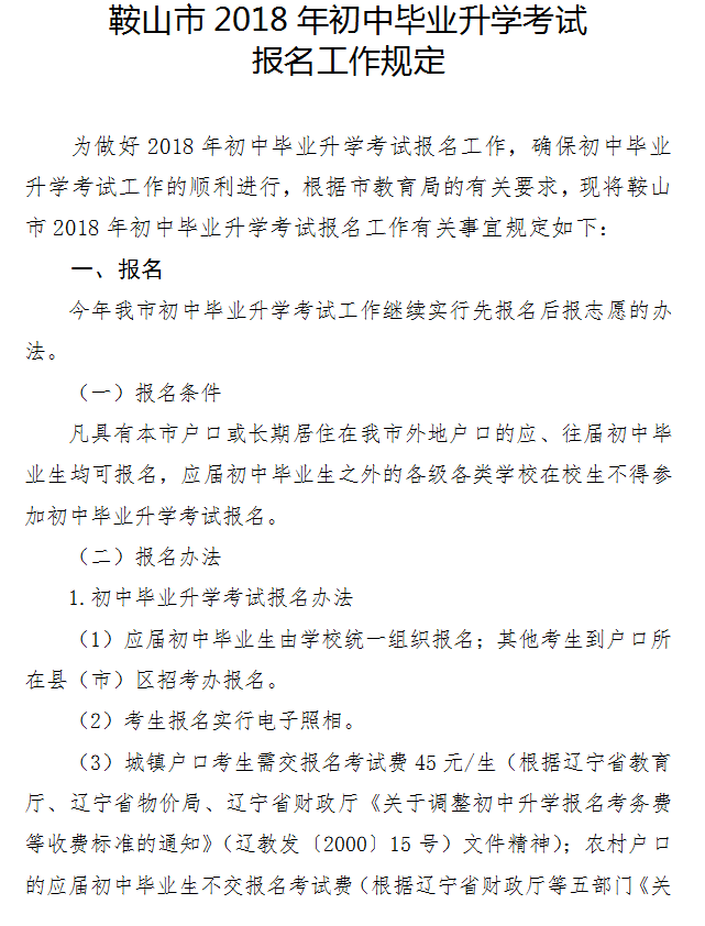 【#中考# #辽宁鞍山2018中考报名时间:4月26日截止#】©无忧考网中考频道从鞍山教育网了解到,辽宁鞍山2018中考报名时间已公布,中考报名安排在4月16日至26日期间举行,具体如下: