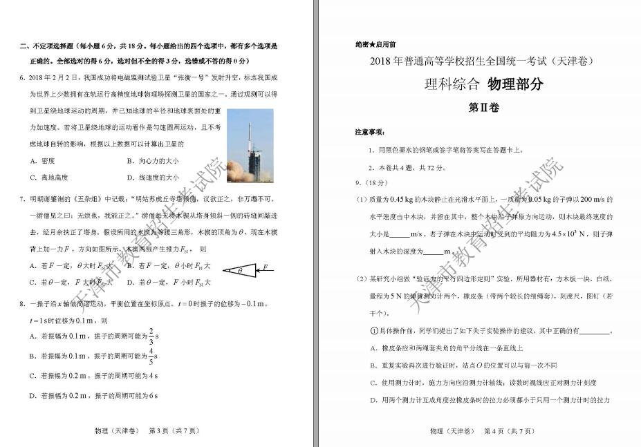 考网从天津招考资讯网获悉,2018年天津高考理综真题及答案已公布,详情如下,仅供大家参考!