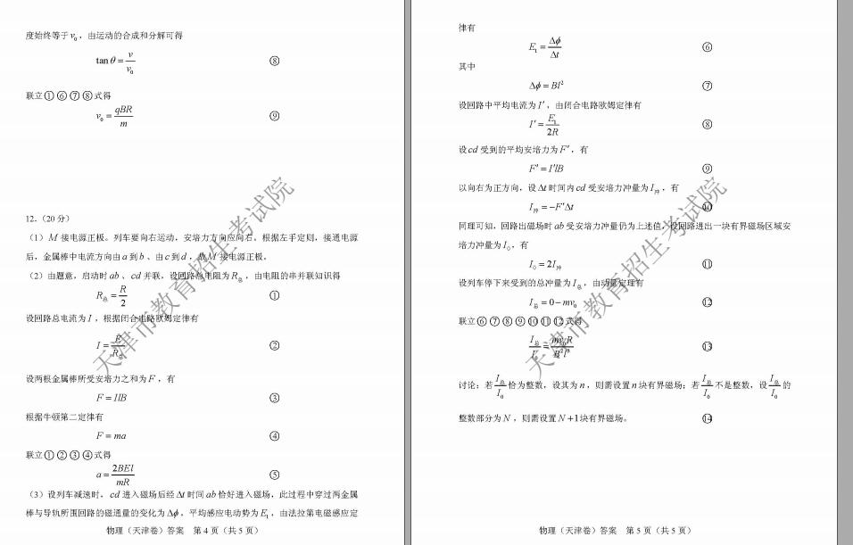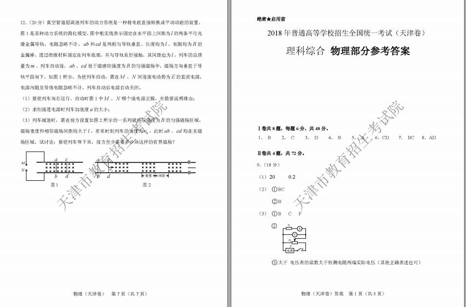 2018年天津高考理综真题及答案(已公布)