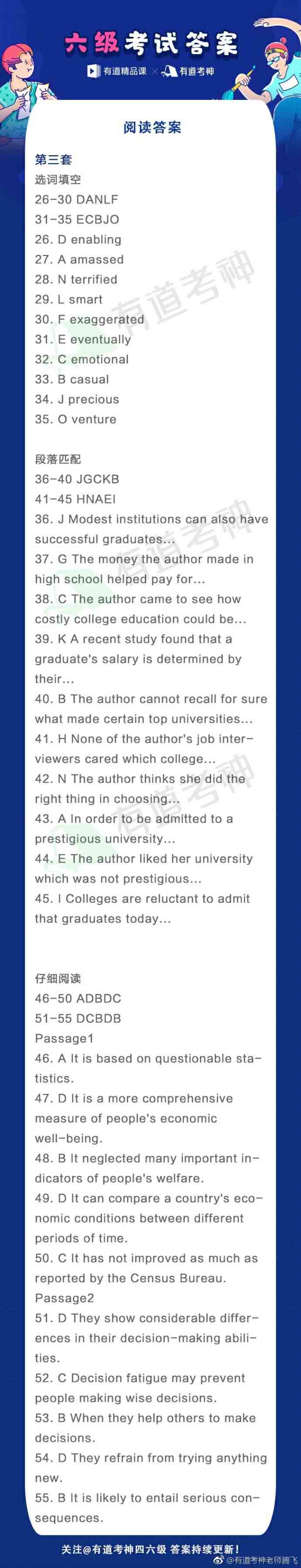 【#大学英语四六级考试# #2018年6月英语六级答案:阅读答案含选词填空【已公布】#】2018年6月英语六级考试已结束,®无忧考网四六级频道在考后特别搜集整理了2018年6月英语六级答案:阅读答案含选词填空【已公布】,仅供大家参考,祝大家顺利通过六级考试!