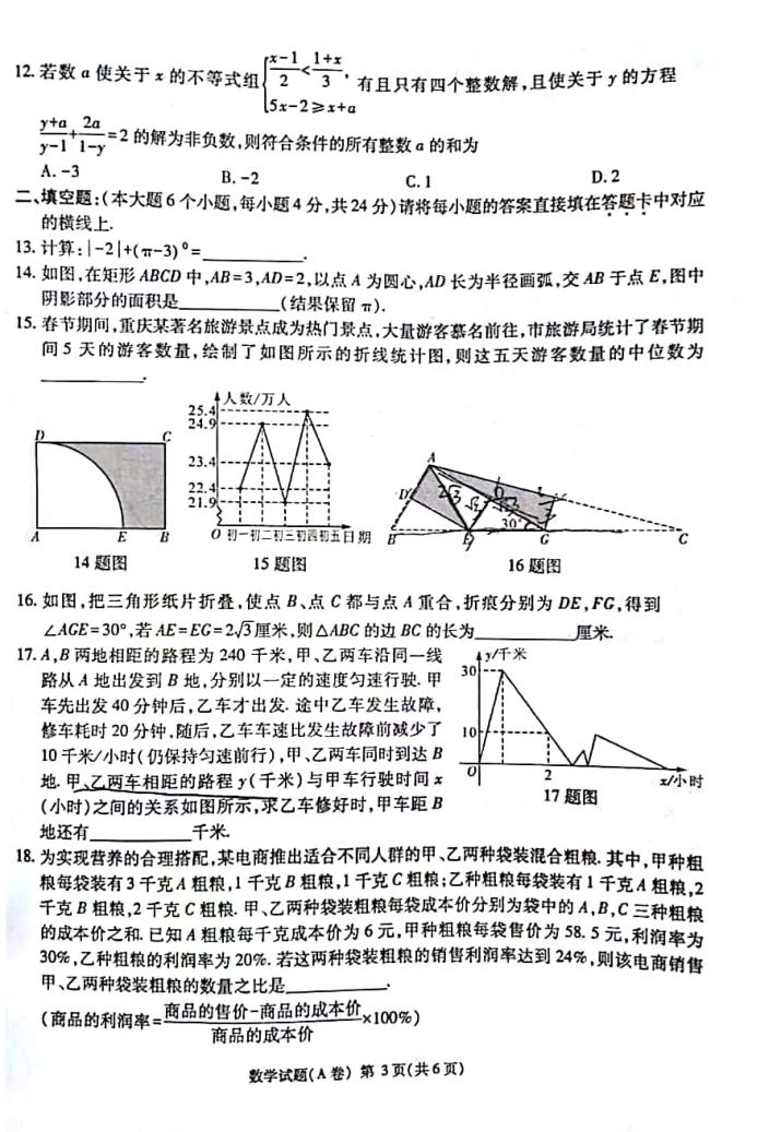 【#中考# #2018年重庆合川中考数学试卷及答案A卷(已公布)#】2018年重庆合川中考数学考试已结束,®无忧考网中考频道从网络上搜集整理了“2018年重庆合川中考数学试卷及答案A卷”,供考生们参考学习,小编预祝大家取得优异的成绩!