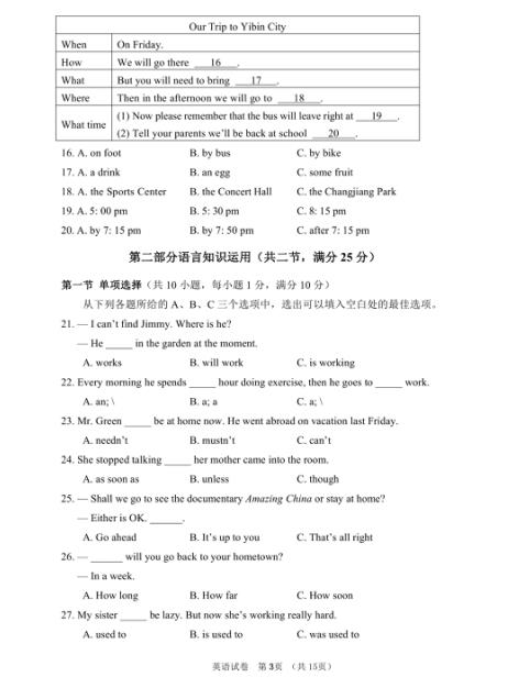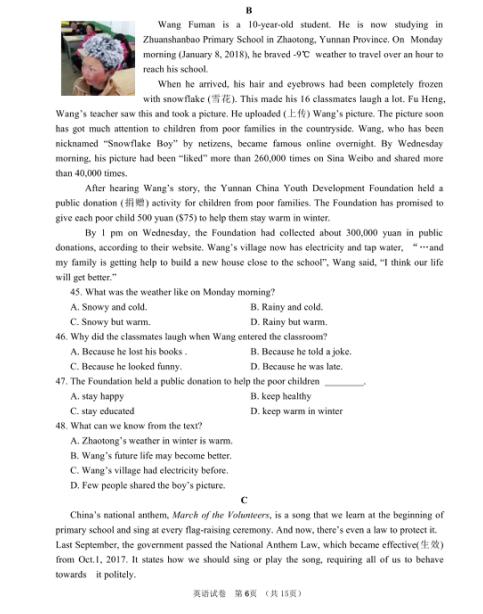 【#中考# #2018年四川宜宾中考英语试题(已公布)#】2018年四川宜宾中考英语考试已结束,®无忧考网中考频道从网络上搜集整理了“2018年四川宜宾中考英语试题”,供考生们参考学习,小编预祝大家取得优异的成绩!