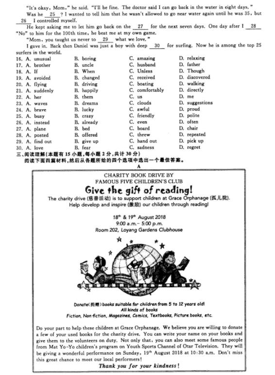 【#中考# #2018年浙江绍兴中考英语试题(已公布)#】2018年浙江绍兴中考英语考试已结束,®无忧考网中考频道从网络上搜集整理了“2018年浙江绍兴中考英语试题”,供考生们参考学习,小编预祝大家取得优异的成绩!