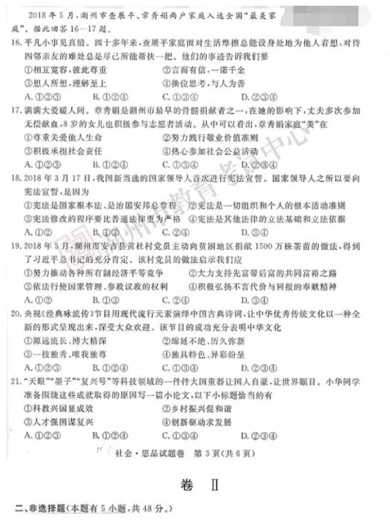 【#中考# #2018年浙江湖州中考政治试题及答案(已公布)#】2018年浙江湖州中考政治考试已结束,®无忧考网中考频道从网络上搜集整理了“2018年浙江湖州中考政治试题及答案”,供考生们参考学习,小编预祝大家取得优异的成绩!