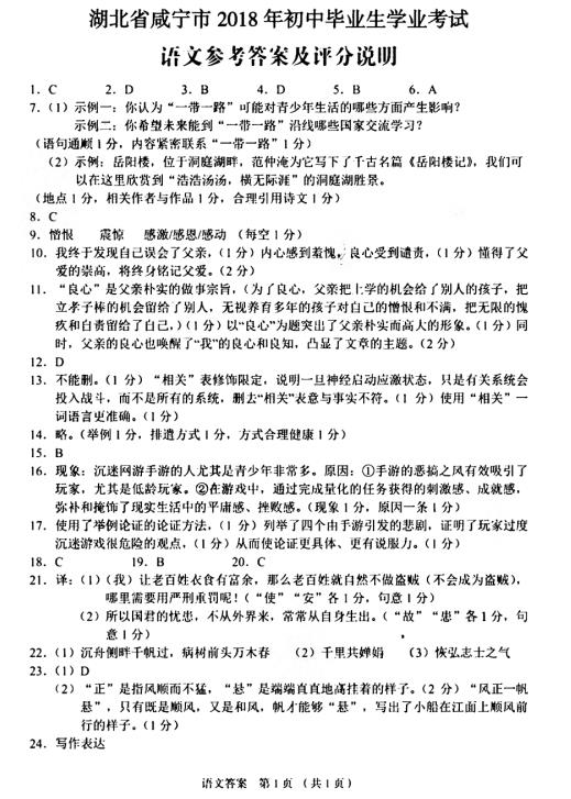 【#中考# #2018年湖北咸宁中考语文试题及答案(已公布)#】2018年湖北咸宁中考语文考试已结束,©无忧考网中考频道从网络上搜集整理了“2018年湖北咸宁中考语文试题及答案”,供考生们参考学习,小编预祝大家取得优异的成绩!
