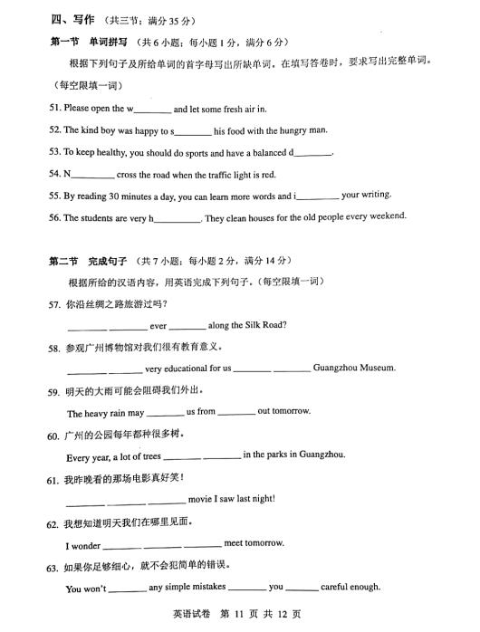 【#中考# #2018年广东广州中考英语试题及答案(已公布)#】2018年广东广州中考英语考试已结束,®无忧考网中考频道从网络上搜集整理了“2018年广东广州中考英语试题及答案”,供考生们参考学习,小编预祝大家取得优异的成绩!