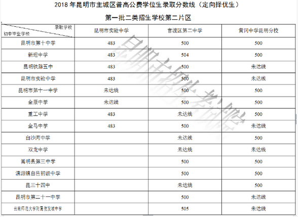 根据2018年昆明市普通高中招生计划,依据初中学生学业水平考试成绩统计,经昆明市招生委员会主任会议研究决定: