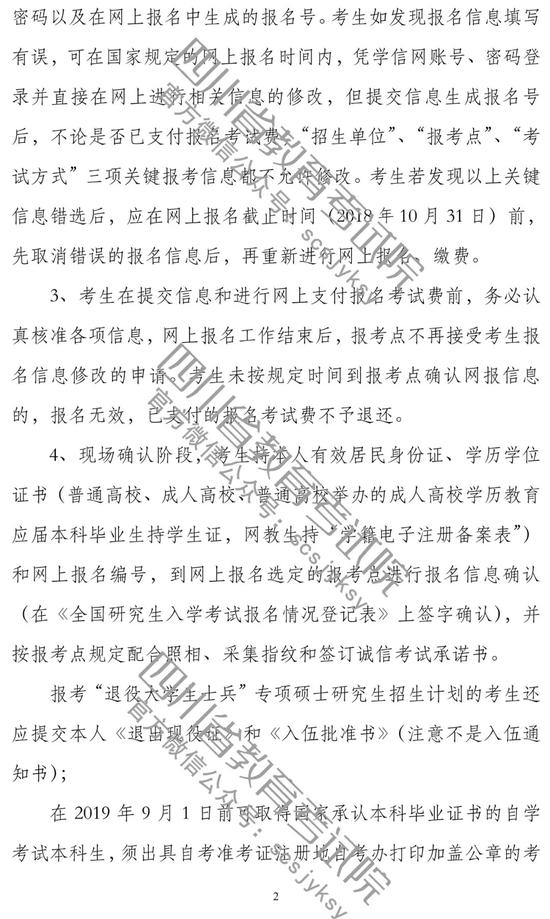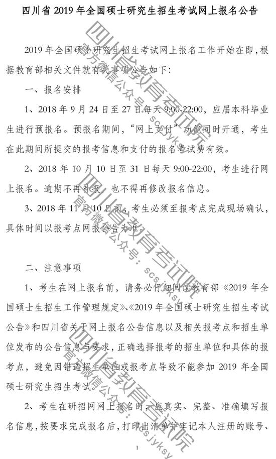 重磅!四川省2019研究生招生考试网上报名公告出炉