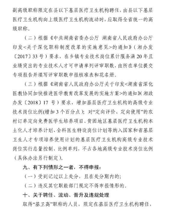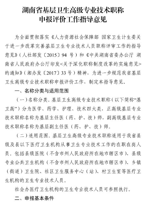 2018湖南各专业卫生高级职称评审条件【已公布】