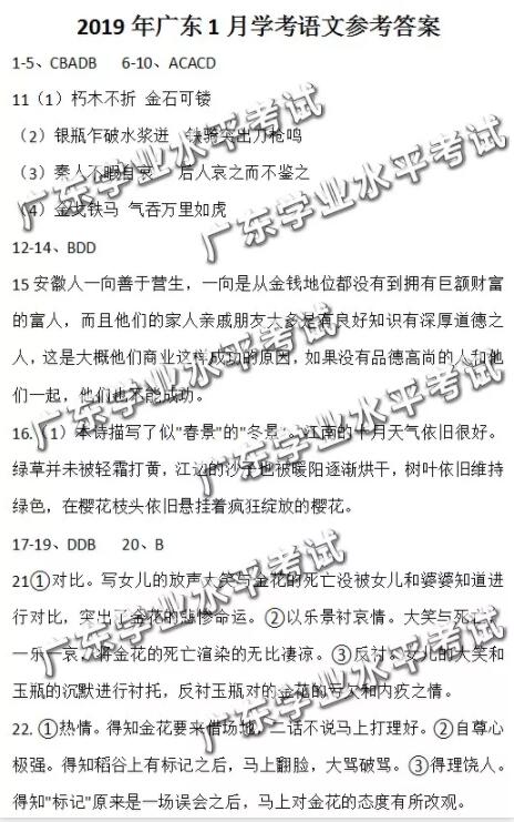 【#高中会考# #2019年1月广东学业水平考试语文真题及答案#】®无忧考网会考频道从广东学业水平考试网了解到,2019年1月广东学业水平考试语文真题及答案已公布,具体如下: