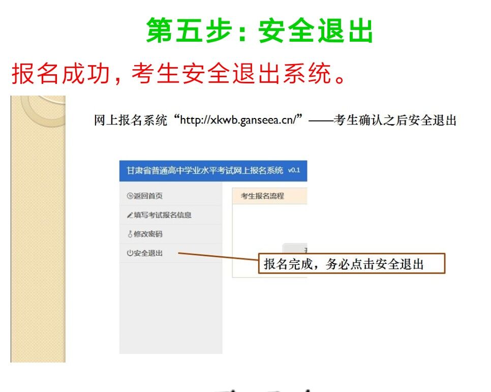 1.4月8日至12日,考生自行登录网上报名系统平台(学生登录网址:http://xkwb.ganseea.cn)进行网上报名,登录地点不做限制。用户名为考生本人身份证号(尾号为X须大写),初始密码为身份证号后8位(尾号为X须大写)。首次登陆的考生须更改初始密码。