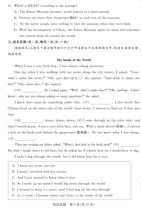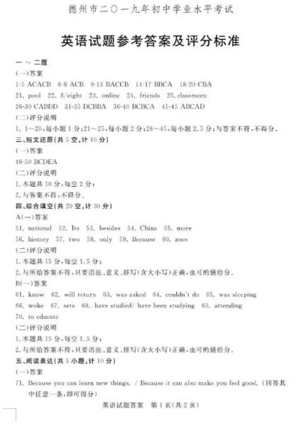 【#中考# #2019年山东德州中考英语试卷及答案【已公布】#】2019年山东德州中考英语考试已结束,©无忧考网中考频道搜集整理发布了“2019年山东德州中考英语试卷及答案”,供考生们参考学习,小编预祝大家取得优异的成绩!
