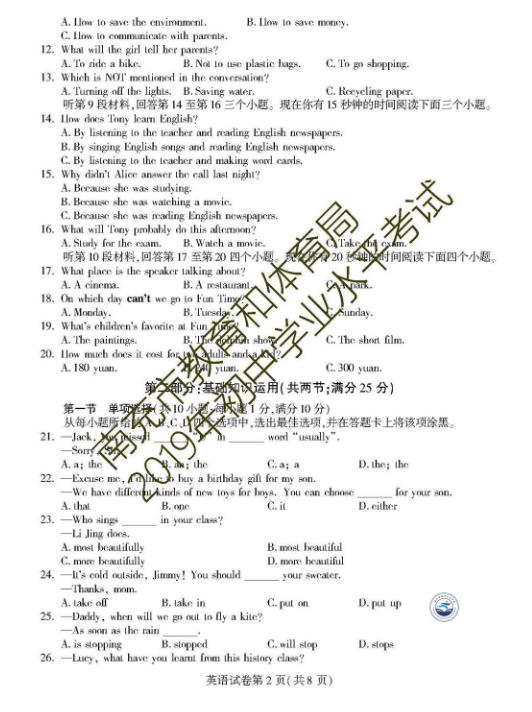 【#中考# #2019年四川南充中考英语试卷及答案【已公布】#】2019年四川南充中考英语考试已结束,®无忧考网中考频道搜集整理发布了“2019年四川南充中考英语试卷及答案”,供考生们参考学习,小编预祝大家取得优异的成绩!