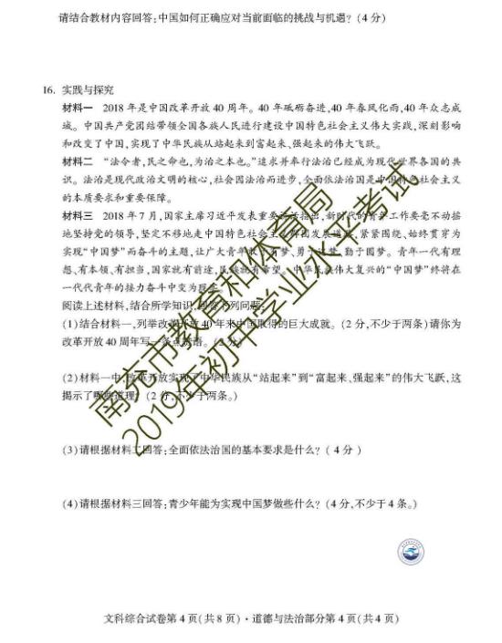 【#中考# #2019年四川南充中考政治试卷及答案【已公布】#】2019年四川南充中考政治考试已结束,©无忧考网中考频道搜集整理发布了“2019年四川南充中考政治试卷及答案”,供考生们参考学习,小编预祝大家取得优异的成绩!