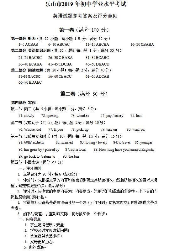 【#中考# #2019年四川乐山中考英语试题及答案【已公布】#】2019年四川乐山中考英语考试已结束,©无忧考网中考频道搜集整理发布了“2019年四川乐山中考英语试题及答案”,供考生们参考学习,小编预祝大家取得优异的成绩!