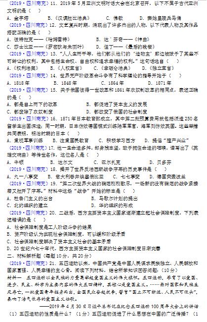 【#中考# #2019年四川南充中考历史试题及答案【已公布】#】2019年四川南充中考历史考试已结束,®无忧考网中考频道搜集整理发布了“2019年四川南充中考历史试题及答案”,供考生们参考学习,小编预祝大家取得优异的成绩!