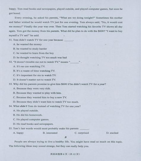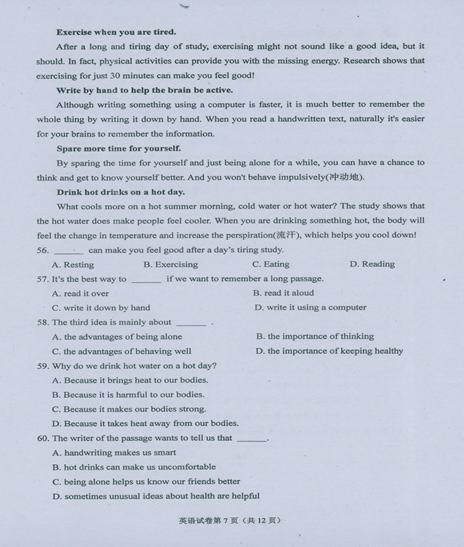 【#中考# #2019年四川遂宁中考英语试卷【已公布】#】2019年四川遂宁中考英语考试已结束,®无忧考网中考频道搜集整理发布了“2019年四川遂宁中考英语试卷”,供考生们参考学习,小编预祝大家取得优异的成绩!